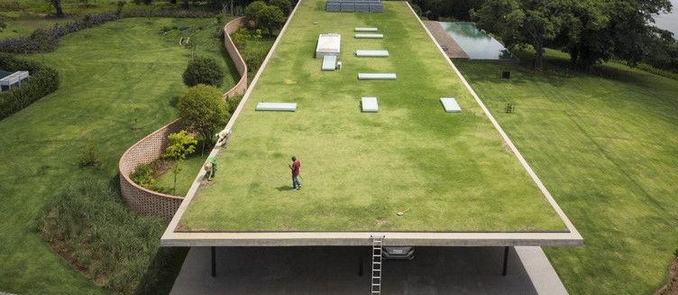 Em projetos que utilizam sistemas de lajes de cobertura, geralmente concebidos em pré-fabricados de concreto, também utilizamos mantas impermeáveis ou telhado jardim. Nestes casos a cobertura também pode ser utilizada como terraço.